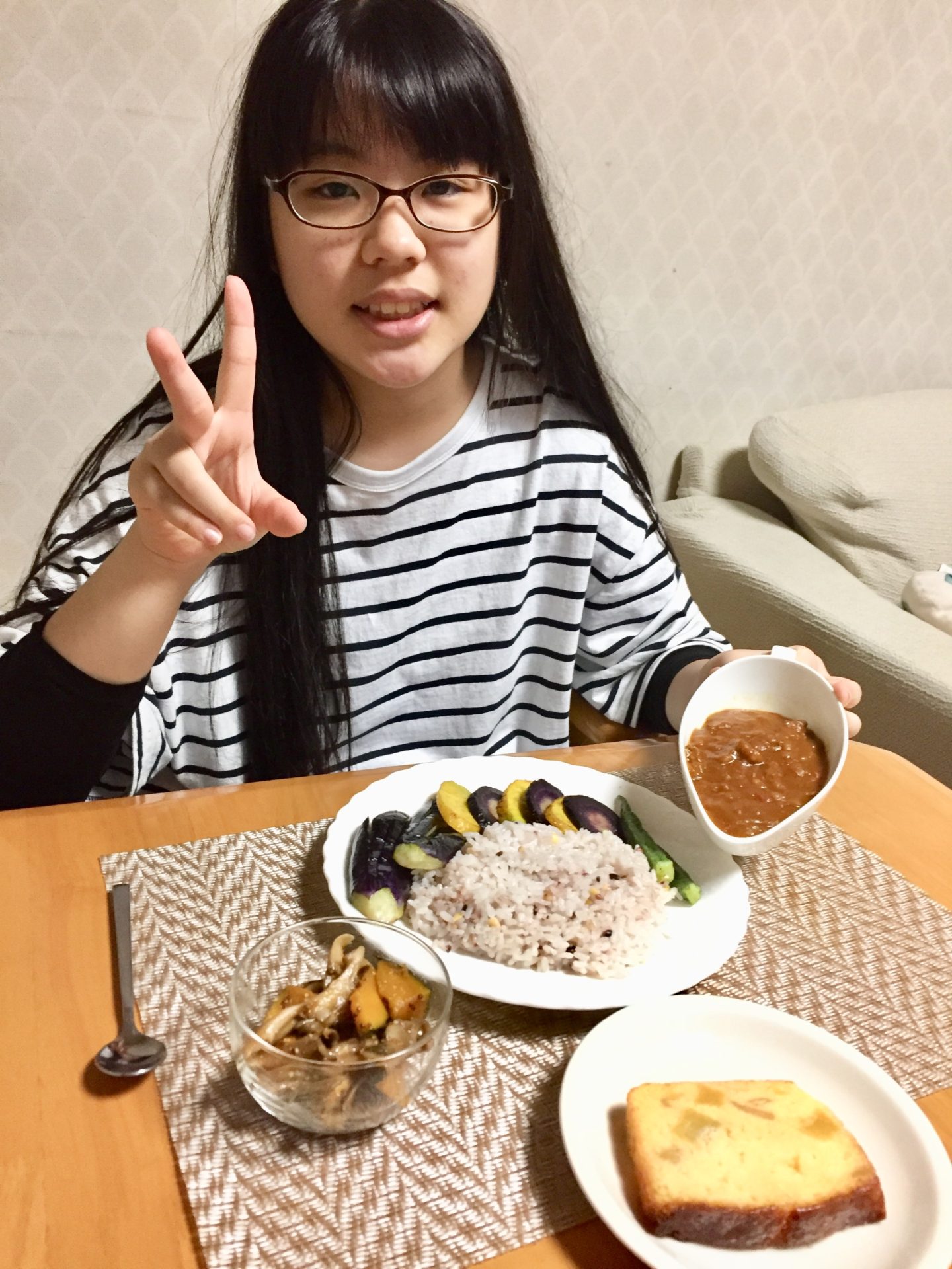 後日、父とカレーを作ってみました«٩(´ ꒳ *)۶» お肉を使わないカレーは久しぶりだったので歯ごたえやスタミナがつくのかなどと分からないこともあってよく考えながら調理をすることが出来ました。また、一昨年、みんなで作ったカレーや学んだことを思い出して地球小屋で大きく成長出来たな、と改めて感じました。できたカレーは思ったよりトロトロしていてコクがあり、いつもと味が違う味わい深いカレーでした。家族みんなに美味しい、と言って貰えて嬉しかったです❀(*´▽)❀